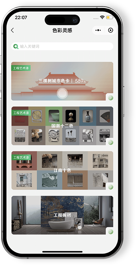 設計師,作爲空間美學的靈魂締(dì)造者,始終站在時代前沿引領室内精裝潮流。三棵樹工程「設計之道」色材集成化專業平台,集國潮色彩、美學趨勢、選材及課程於(yú)一體,專爲設計師量身打造,構建一站式色材生态。
